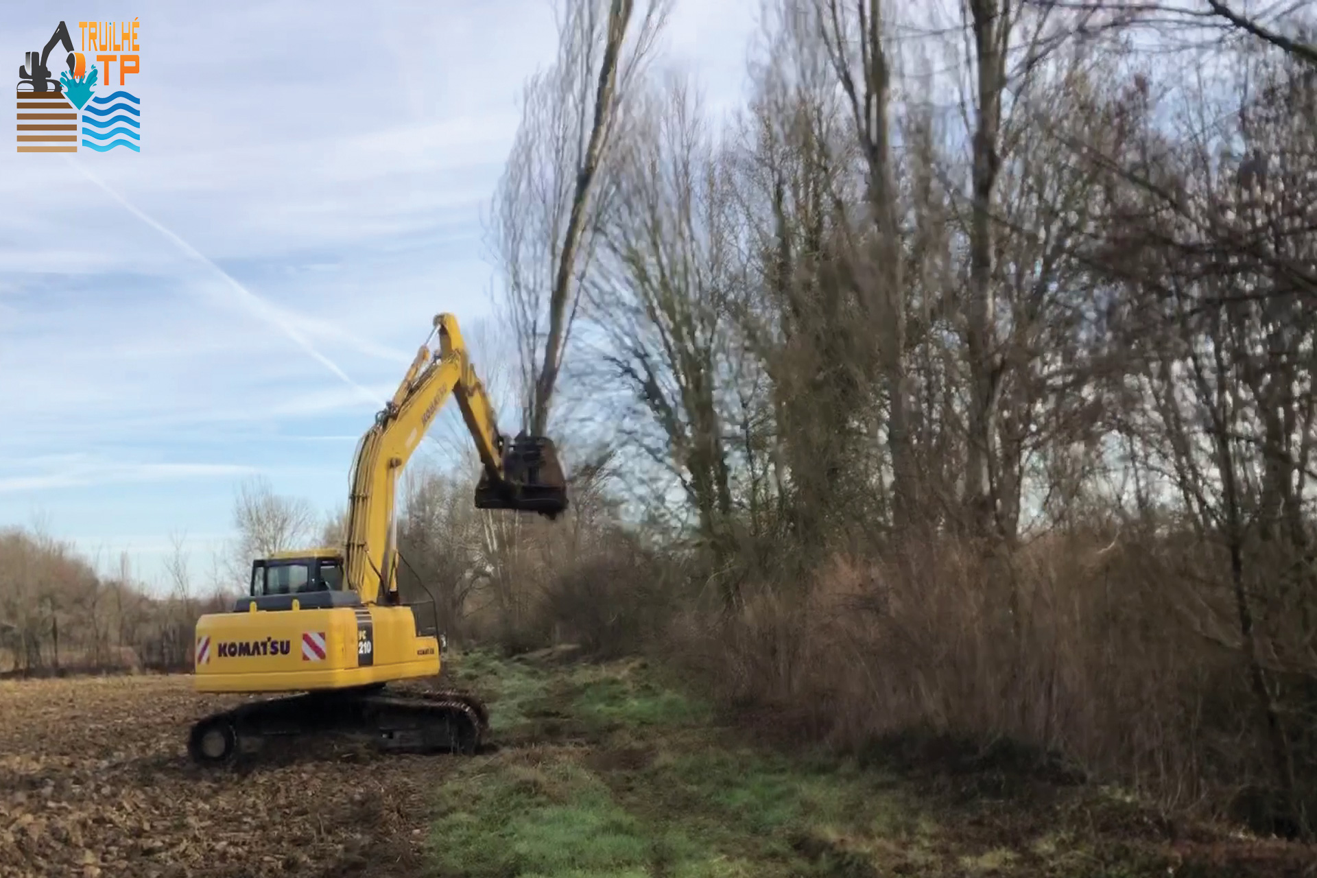 Abattage d'arbres mécanisé en bord de rivière "La Gimone" Il est essentiel d’entretenir une exploitation forestière pour accroître la longévité…